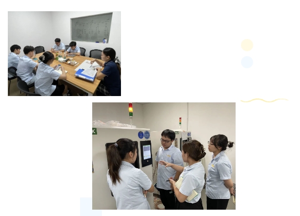 公司唐总对情形与可靠性专业理论知识对新员工举行了培训;检测室主管黄工、杨工连系检测事情现实,通过理论、案例和装备实操相连系的方法,深入浅出,资助新同事罗致新知识、增强岗位实践;同时,检测室还组织其他部分同事观摩学习了检测项目的实操流程,现场答疑,让公司所有员工深入相识检测流程,同时提出合理化优化建议。